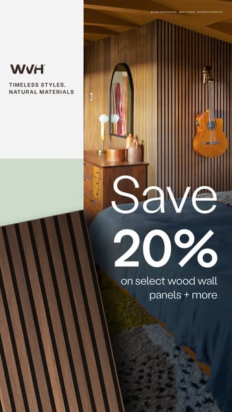 Warmer weather and brighter styles. Save 20% on select wood wall panels and more when you shop WVH®. Freshen up your space. Shop and save today!