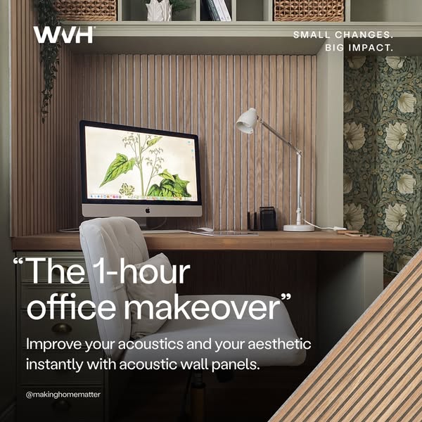 Bad acoustics killing your focus? Transform your home office in an afternoon with real oak slat panels. DIY-friendly.